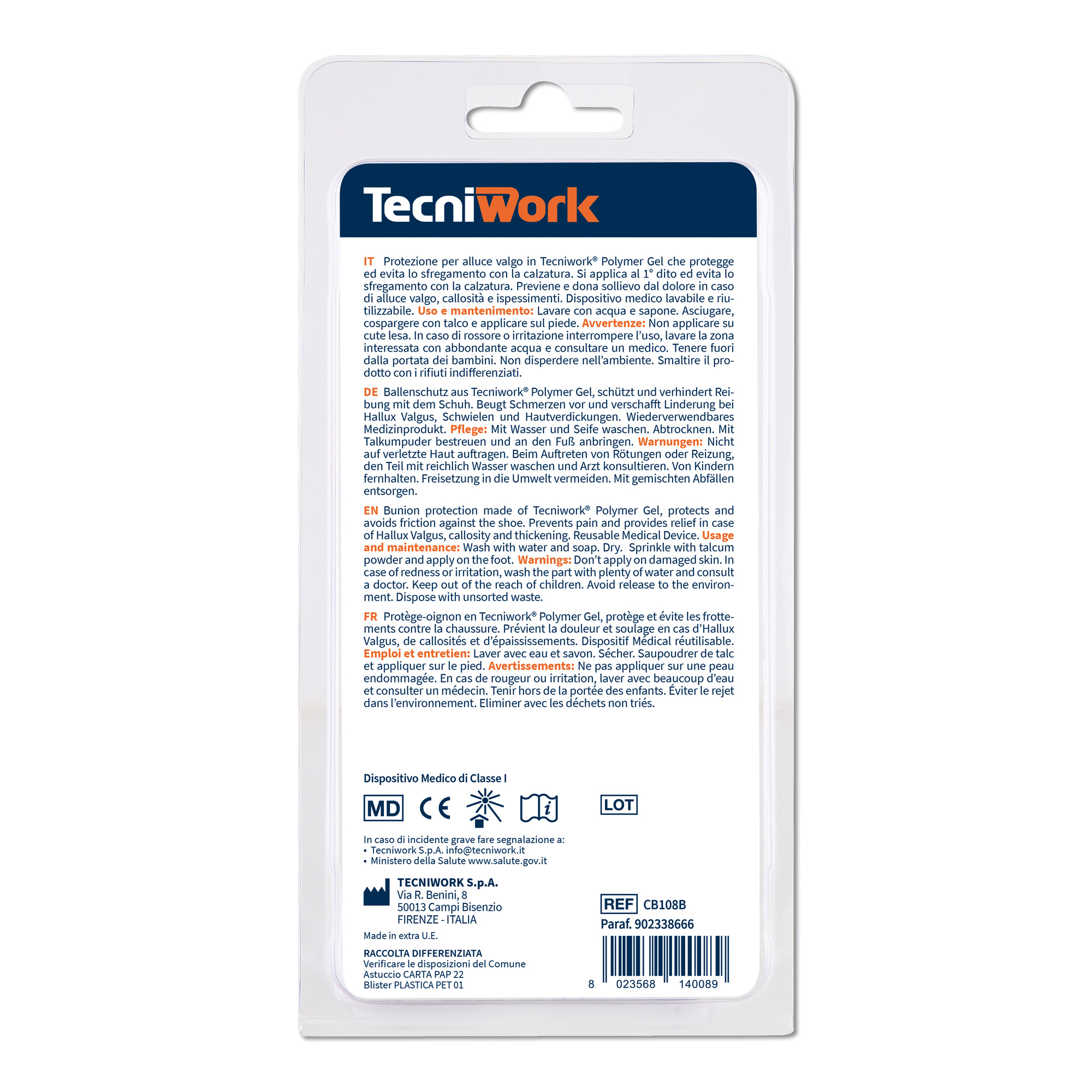 Ballenschutz aus Tecniwork® Polymer Gel, der schützt und Reibung am Schuh verhindert. Er wird an der 1. Zehe angelegt und verhindert das Reiben am Schuh. Verhindert und lindert Schmerzen bei Hallux valgus, Schwielen und Verdickungen.