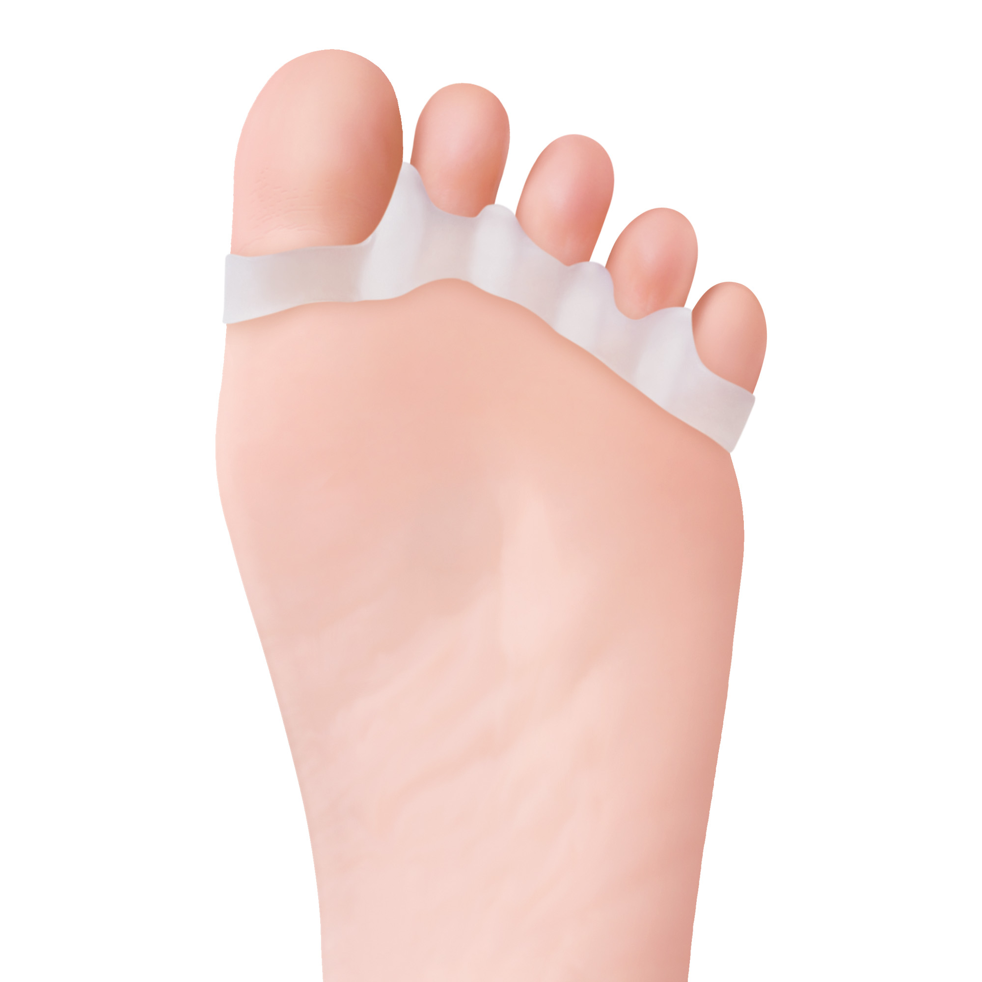 Gel-Zehenspreizer für alle Zehen. Spreizt, richtet und dehnt alle Zehen aus. Weich und bequem, verhindert Schwielen und schützt vor Reibung. Kann sowohl am rechten als auch am linken Fuß getragen werden. Beidseitig verwendbar.