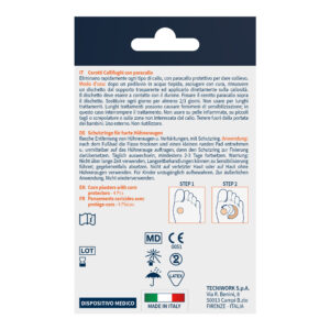 Nur auf verhornter Haut verwenden – nicht auf verletzter, entzündeter oder gesunder Haut. Nicht für längere Anwendung geeignet. Bei Reizungen Anwendung abbrechen. Für Kinder unzugänglich aufbewahren. Nur zur äußeren Anwendung. Nicht wiederverwenden.