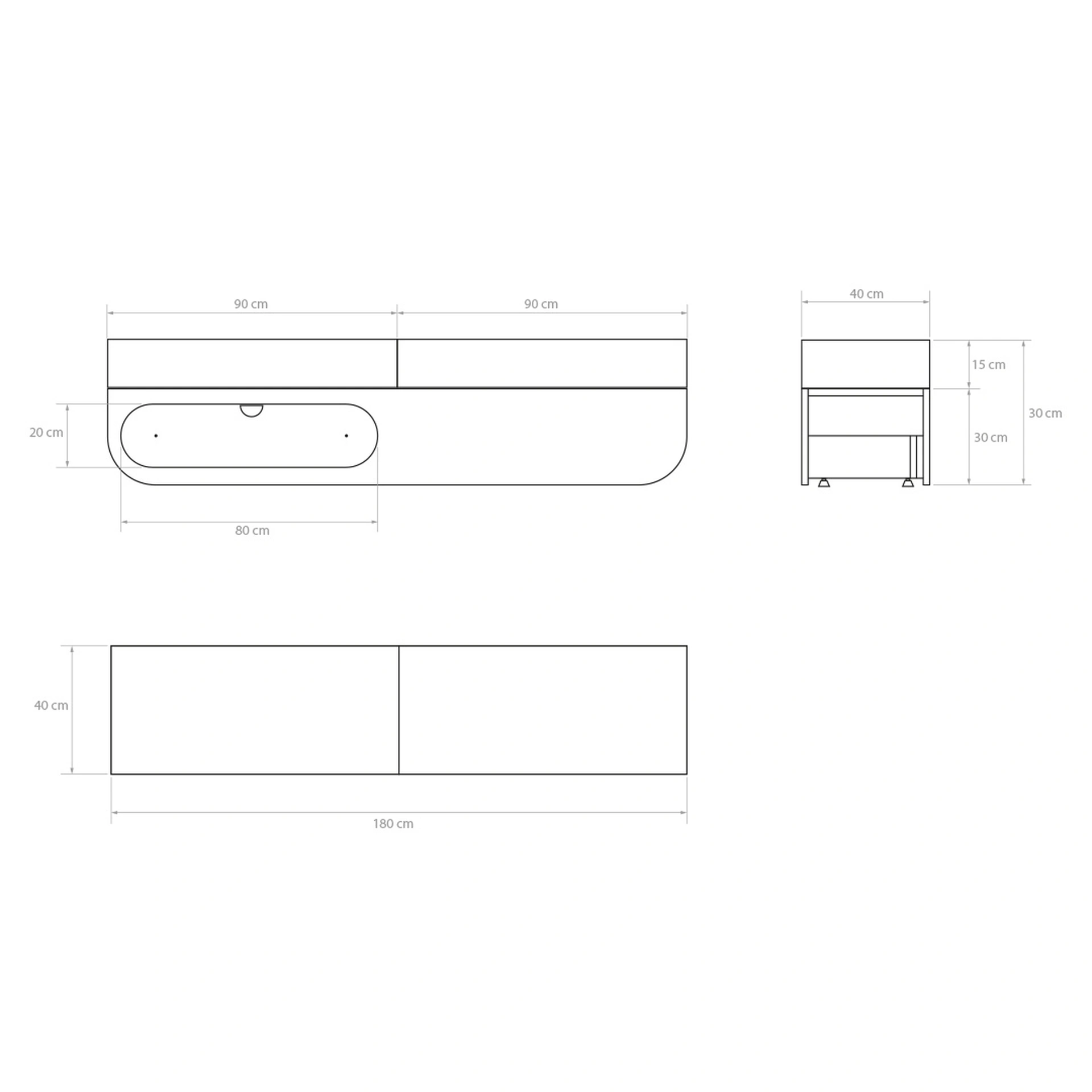 - Schubladenbreite: 80 cm