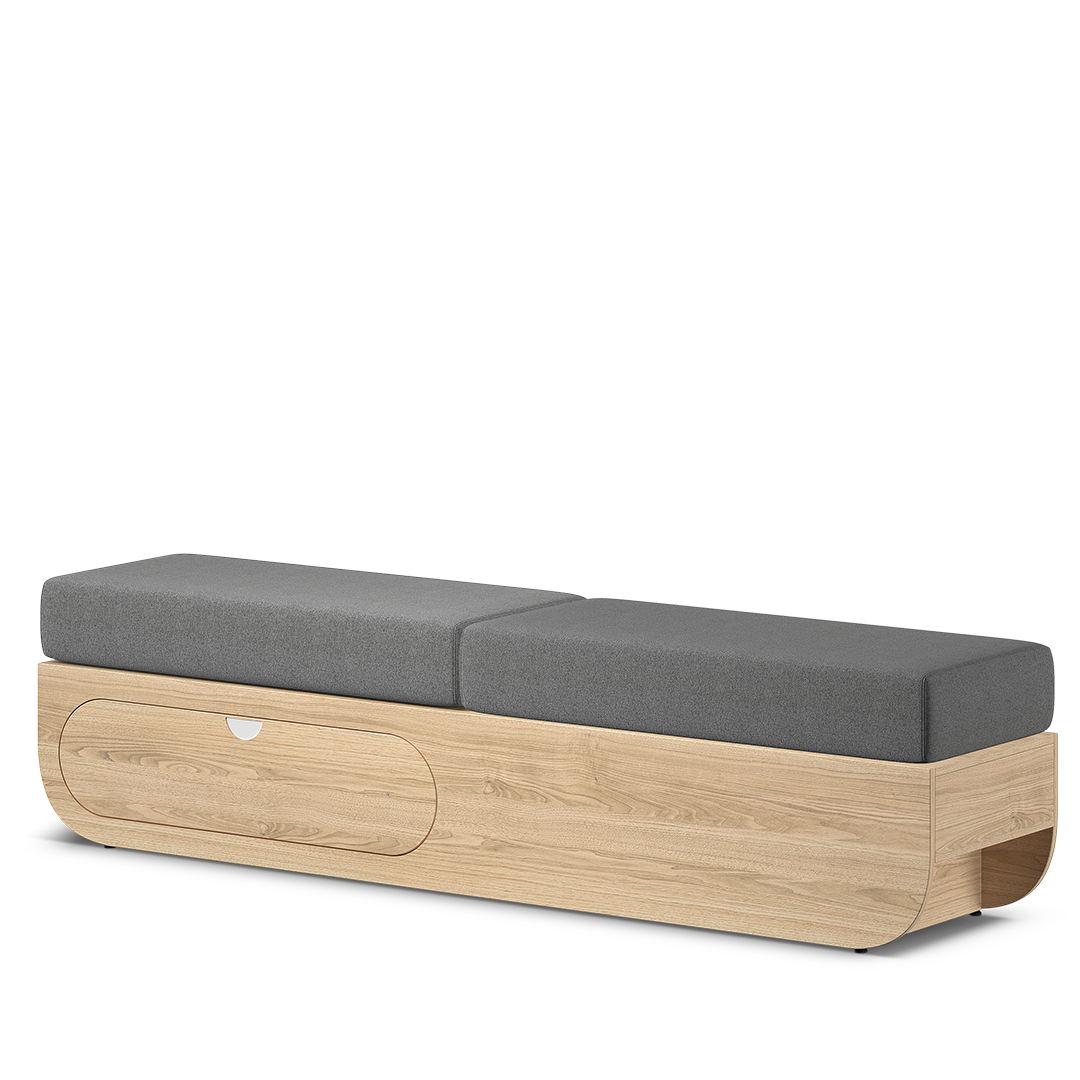 Verwandeln Sie die Base Large von Naggura Rooms in eine elegante Einzelwartebank, ideal, um Ihren Kunden einen komfortablen und funktionalen Raum zu bieten. Die Oberfläche ermöglicht das Platzieren von Zeitschriften, Beleuchtung, Wasser oder persönlichen Gegenständen und macht sie zu einem praktischen und vielseitigen Accessoire. Die hochdichten Kissen (40 kg/m³), bezogen in einem zarten hellgrauen Ton, bieten einen bequemen und einladenden Sitz. Dieses Element sorgt nicht nur für Komfort, sondern verleiht der Umgebung auch einen Hauch von ästhetischer Eleganz. Die robuste Struktur der Basis gewährleistet eine hervorragende Stabilität, während ihr minimalistisches Design sich perfekt in Kliniken, Wellnesszentren oder jeden Raum einfügt, der ein Gleichgewicht zwischen Funktionalität und Stil sucht.