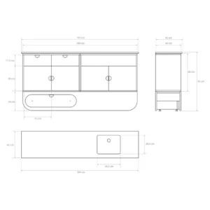 - Tragfähigkeit: 150 kg (Basis), 35 kg (Basisschublade), 25 kg (Schrank)
