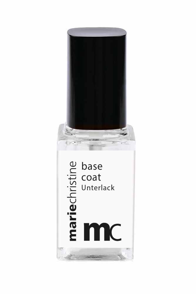 Schnell trocknender transparenter Unterlack: glättet die Nageloberfläche, gleicht Nagelunebenheiten aus, schützt vor Absplittern, Nagelverfärbungen sowie Vergilbungen und verlängert die Haltbarkeit des mc Nagellacks um bis zu 6 Tage.